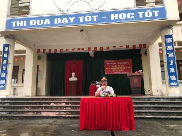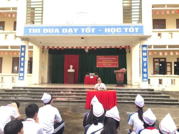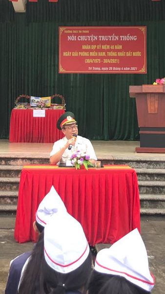 Học sinh trường THCS Tri Trung tham dự buổi nói chuyện truyền thống nhân dịp kỉ niệm 46 năm ngày giải phóng miền Nam thống nhất đất nước.