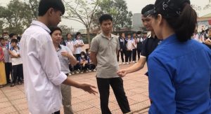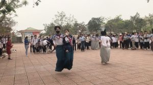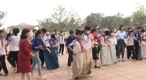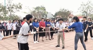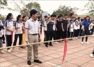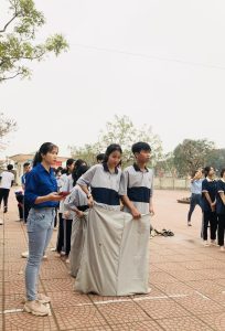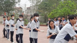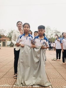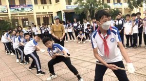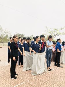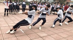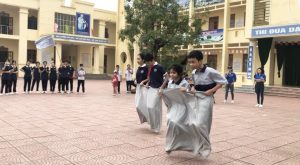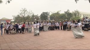 Sau phần lễ, các lớp tham gia chơi trò chơi ” nhảy bao bố” và “kéo co”
