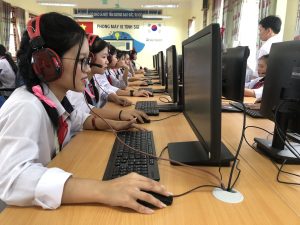 Các em học sinh háo hức khi có phòng Tin học mới.Với bộ môn Tin học, các học sinh mới chỉ được học lý thuyết, chưa được thực hành trên máy tính. Với mong muốn cải thiện môi trường học tập cho các em học sinh, dự án SGI do Công ty Bảo hiểm Bảo lãnh Seoul Hàn Quốc và Tổ chức GCS Hàn Quốc đã xây dựng một phòng tin học đúng tiêu chuẩn bao gồm 35 máy tính hiện đại, bàn ghế, trang thiết bị nghe nhìn, màn hình ti vi, máy in, mạng internet và các trang thiết bị khác với tổng trị giá 650 triệu đồng. Đây là một chương trình viện trợ có ý nghĩa đối với các thầy cô giáo, các em học sinh xã Tri Trung. Qua đó góp phần sẻ chia khó khăn, giúp nhà trường có thêm điều kiện phục vụ cho công tác giảng dạy; đồng thời động viên, khích lệ các thầy cô giáo và các em học sinh tiếp tục vượt khó vươn lên, đạt thành tích cao trong giảng dạy và học tập.