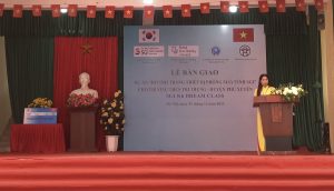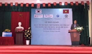 Về dự buổi lễ bàn giao có đại diện Lãnh đạo Liên hiệp các tổ chức hữu nghị thành phố Hà Nội, Công ty Bảo hiểm Bảo lãnh Seoul Hàn Quốc và Tổ chức Global Civic Sharing Hàn Quốc tại Việt Nam, đồng chí Nguyễn Mạnh Huy – UVBTV – Phó Chủ tịch UBND huyện, đại diện lãnh đạo xã Tri Trung và các thầy cô giáo, các em học sinh Trường THCS Tri Trung.